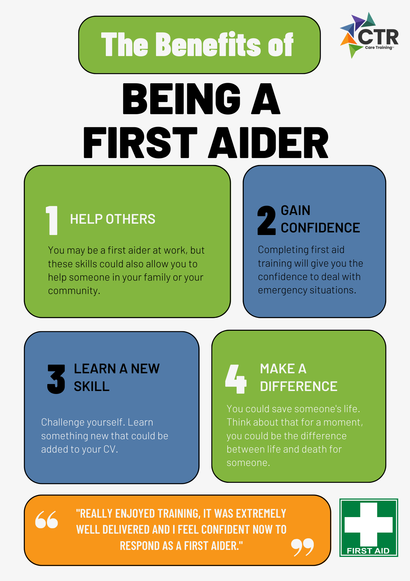 2) Your life saving skills and knowledge could make a big difference to someone and even save a life!